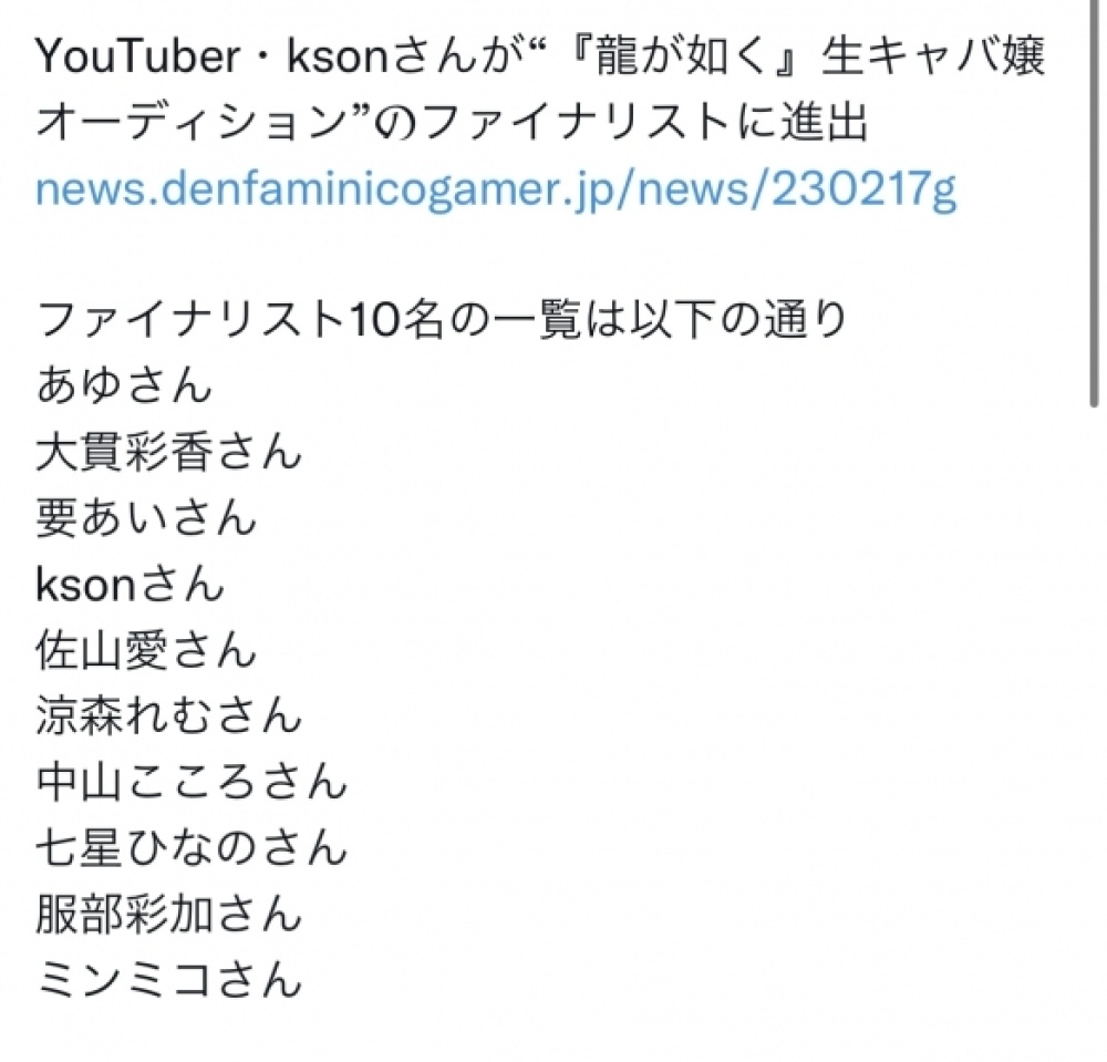就在前幾天,如龍系列的最新作《如龍7外傳:無名之龍》公開了夜店女郎的最終試鏡名單: