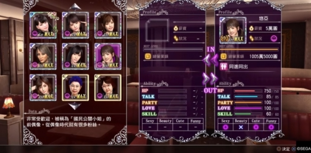 從《如龍》系列一開始,世嘉找來的夜店女郎臉模就包括寫真模特、AV女優(或退役AV女優)等等,讓夜店女郎這個本就噱頭十足的NPC變得更有吸引力。