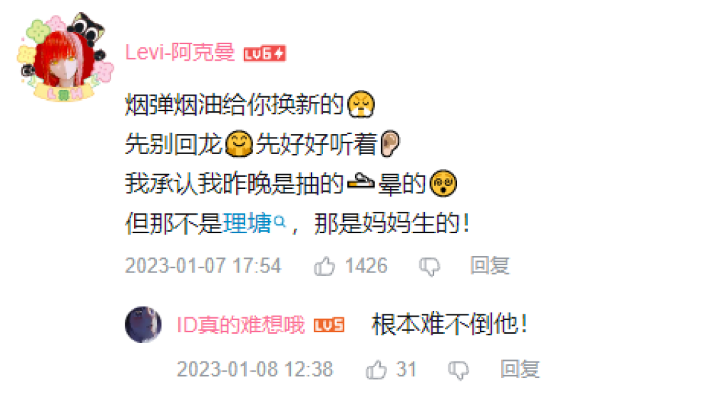 他糟糕的漢語表達能力和缺少教育的本質一次次地在其被營造的純真形象下整齣節目效果。不論是對著鏡頭造電子煙吞雲吐霧的視頻流出,還是殺馬特時期的照片被「好兄弟」發到網上,再加上經典的答非所問「媽媽生的」和跨年倒數CPU冒煙,他本人的每一次出場都能夠為網友提供大量新梗。