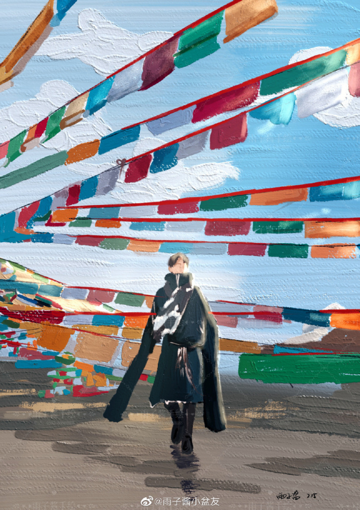 丁真粉絲為其創作的繪畫作品 圖源weibo@雨子醬小朋友