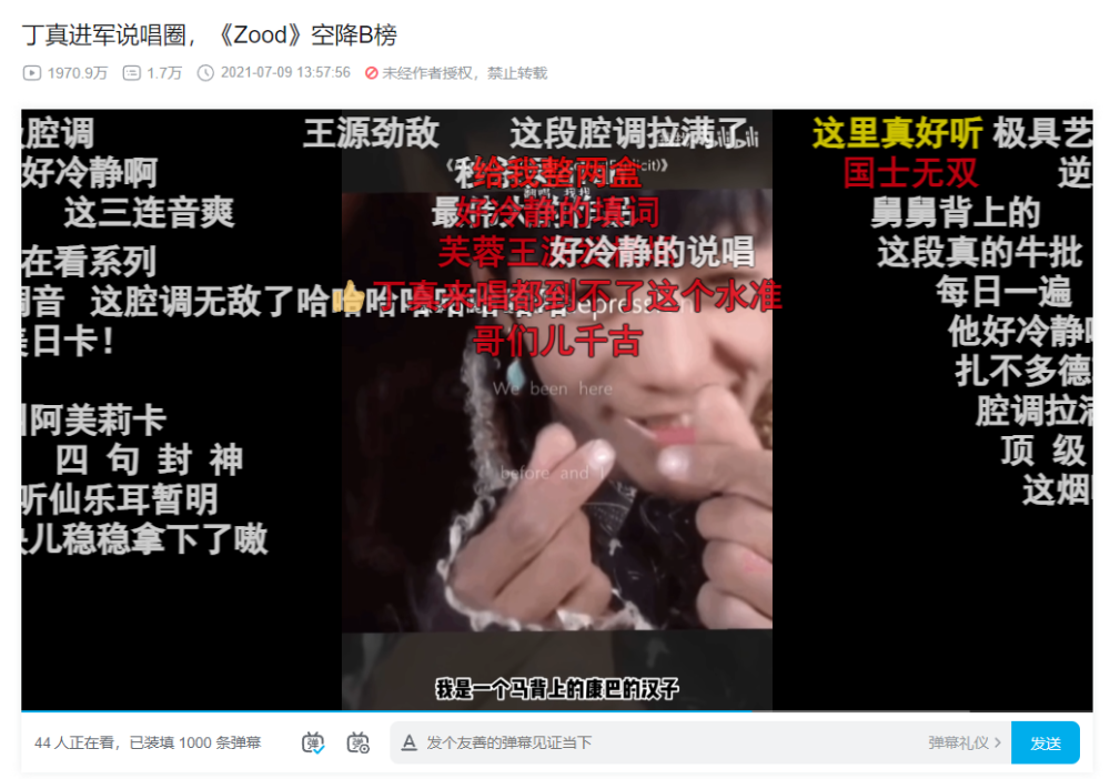 對於丁真的調侃的集大成者可能是2021年B站UP主「我是找找」上傳的《Zood》。這首用丁真音源調制的鬼畜作品用犀利的歌詞和迷幻的電音諷刺他「德不配位」,不論是「1!5!」還是「都什麼年代,還在抽傳統香煙」都成為了經久不衰的定型文。