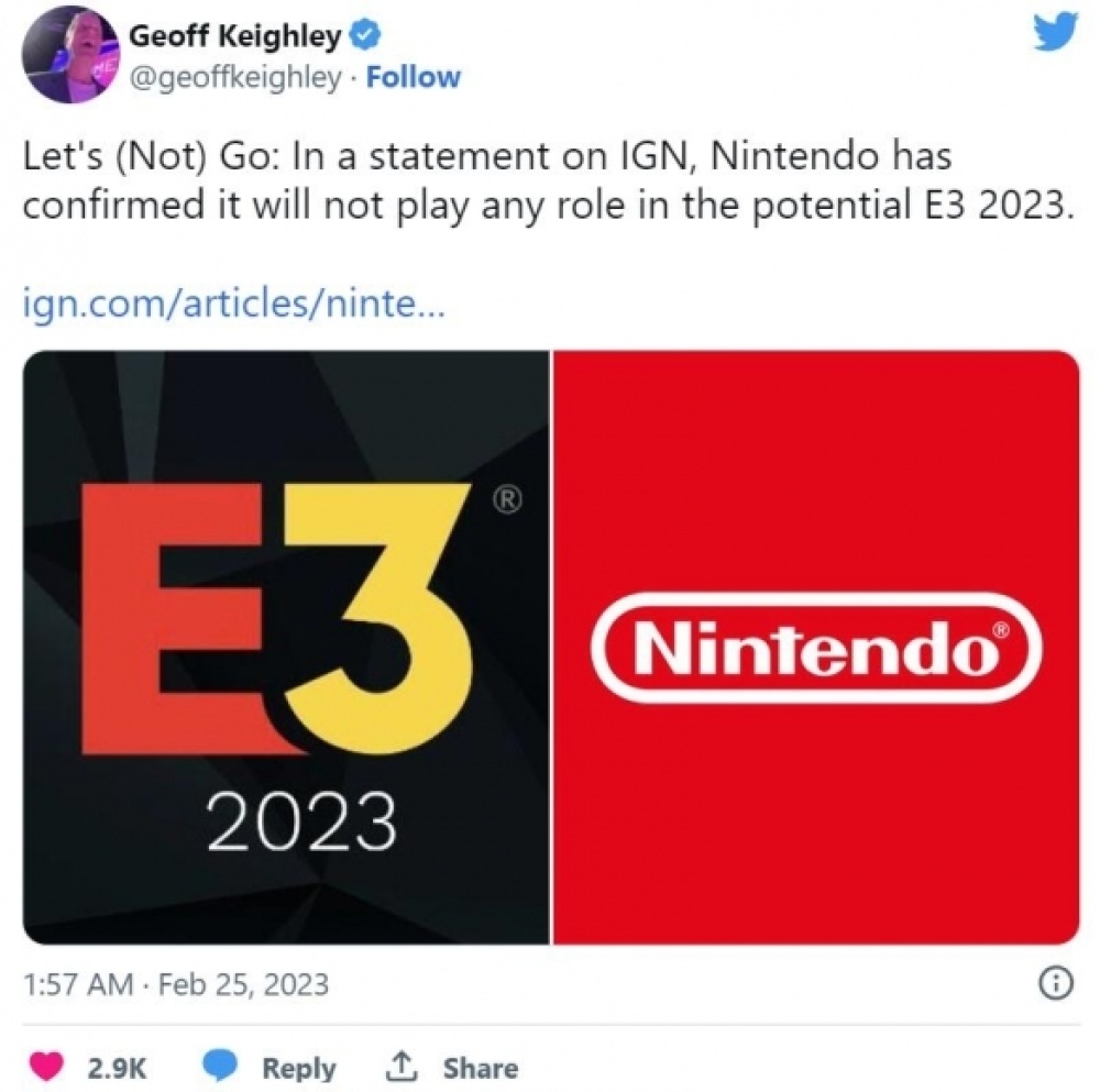 任天堂已經宣布,將不參與今年的E3 2023展會。近年來與E3展開正面競爭的TGA主辦人Geoff Keighley發布推文公開嘲諷E3 2023,並質疑今年E3是否能夠如期舉行。