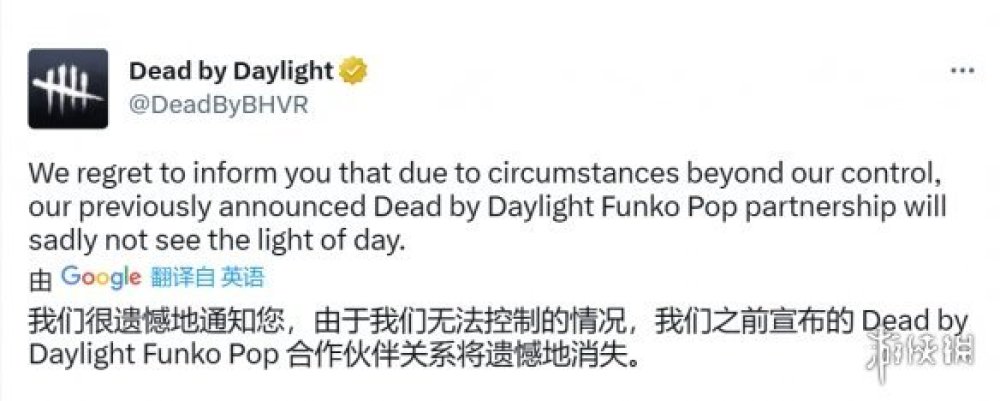 《黎明殺機》官方表示,此前宣布的與Funko Pops的合作項目(黎明殺機角色的大頭玩偶),由於無法控制的情況,現在已經取消。官方為此向玩家道歉,並安撫玩家不用擔心,還有更多令人興奮的合作正在進行中。