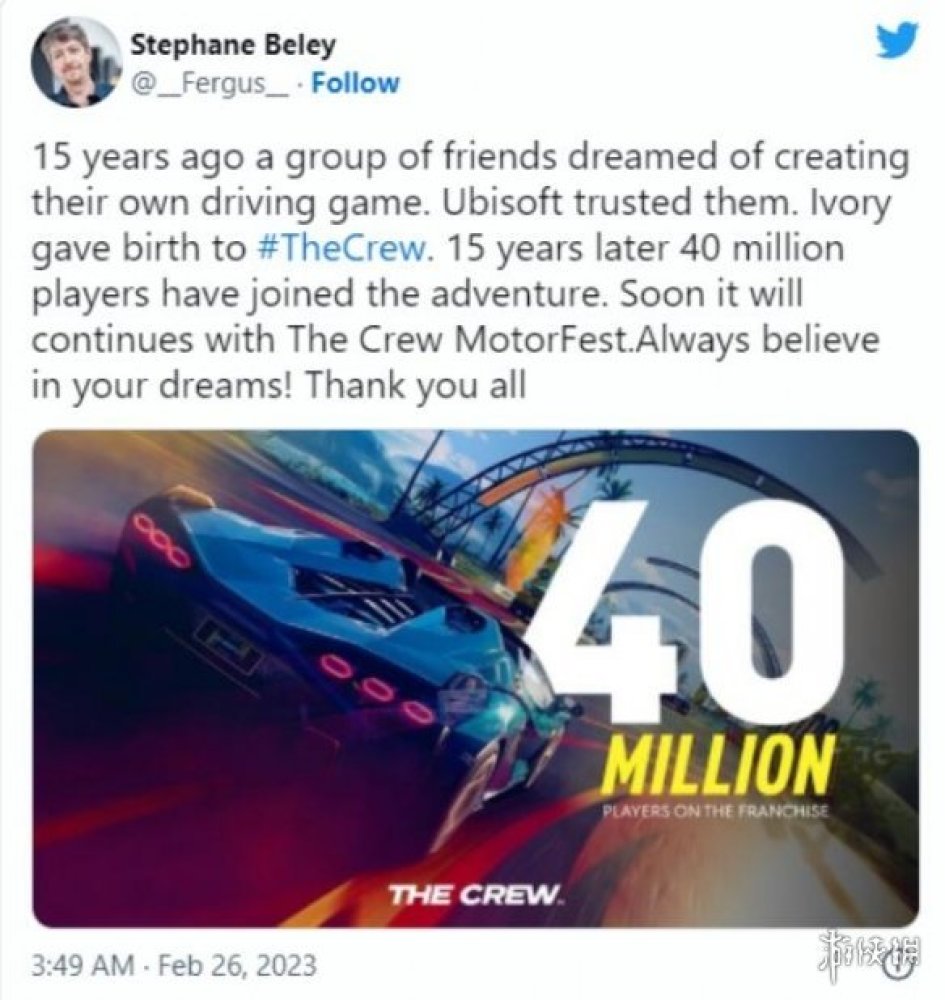 《飆酷車神》創意總監在推特上透露,《飆酷車神》系列在所有平台上的玩家總數超過了4000萬,遊戲最早於2014年發售,二代於2018年發售。