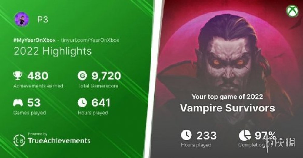 值得一提的是,在 菲爾・斯賓塞 自己的2022年的Xbox遊戲年度報告中,《吸血鬼倖存者》是他2022年遊玩時間最長的遊戲,總共花費了223個小時,這款玩起來非常上頭的遊戲,深得他的喜愛。