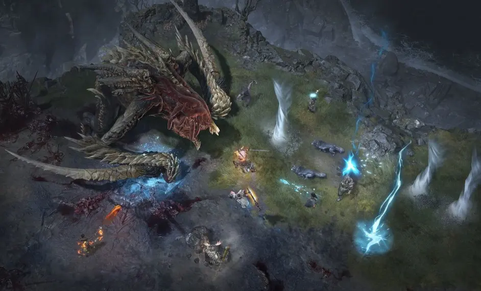 「《暗黑破壞神4》的美術風格是陰暗而可怕的,在很多方面都讓人聯想到《暗黑破壞神2》的恐怖氛圍,」暴雪開玩笑說。「遊戲中有五個獨特的區域,每個區域都有自己嚴峻的環境和主題地牢。其中一個藝術目標是讓每個場景看起來都像一幅畫,所以每一種顏色和紋理都是精心製作的,以實現理想的冷酷設計。」