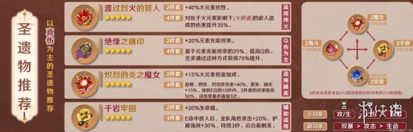 考慮4件套成型困難,2+2的搭配也是挺適配的,上圖2魔女、2角斗、2宗室、2千岩都可實現2+2的混搭,哪套詞條好用哪套即可。