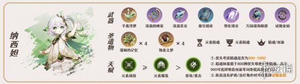 「參考輸出手法」:納西妲EQ、班尼特QE、迪希雅E、甘雨E接蓄力射箭(約4-6箭)