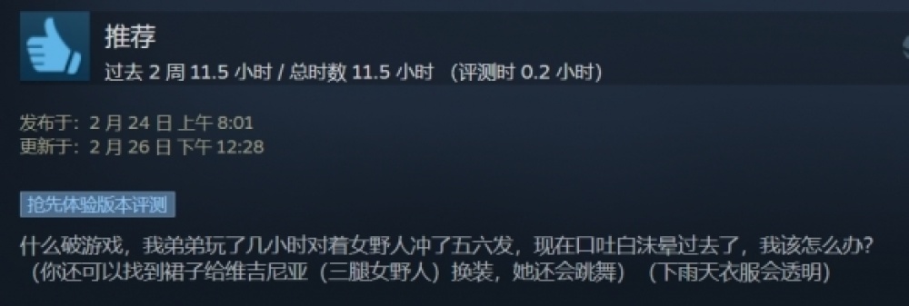另外一些玩家則發出了很直球式言論:「我弟弟玩了幾小時對著女野人沖了五六發,現在口吐白沫暈過去了,我該怎麼辦?」