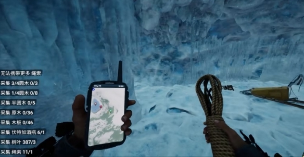 尤其是探索雪山周圍的山洞,裡面只有罐頭和繩子布條這類資源,沒有任何其他東西