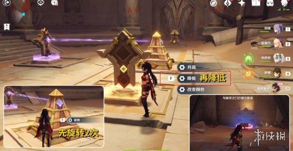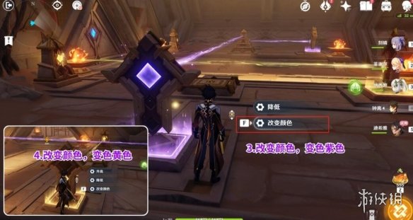 ③繼續往裡走,看到機關,先把中間的機關旋轉2次,就會下沉,再把黃色光線的機關降低即可開門了,就能看到寶箱了,同樣打掉怪即可獲得。