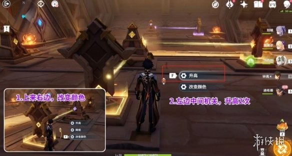 ⑵再來到左邊中間的機關,升高2次,機關就會下沉
