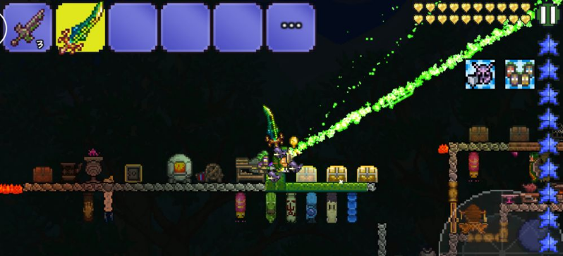 7.泰拉瑞亞泰拉之刃(大地之刃)的劍氣效果十分出色,劍氣消失較慢,亮度高,可以在夜晚攻擊時,提供很好的照明效果,避免夜間戰鬥的視野黑暗問題。