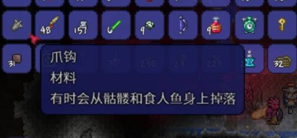 首頁 泰拉瑞亞 問答 泰拉瑞亞抓鉤怎麼做? 2022-07-01 1、進入泰拉瑞亞遊戲。2、在礦洞里擊殺骷髏和食人魚獲得爪鉤。3、在鐵砧處,用一個鐵錠合成鐵鏈。4、用勾爪和鐵鏈在鐵砧合成抓鉤。5、點擊抓鉤裝備到身上6、按E使用抓鉤。