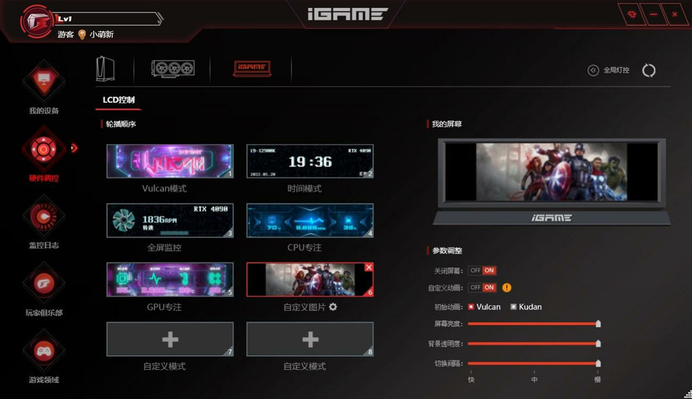 畢竟是張頂級非公卡,相對於公版來說在規格上還是強上不少的,眾所周知七彩虹的顯卡提供了雙BIOS,也就是標准和超頻模式,顯卡也有提供到一鍵超頻的按鈕,相比於復雜的設置,還是便捷不少的。