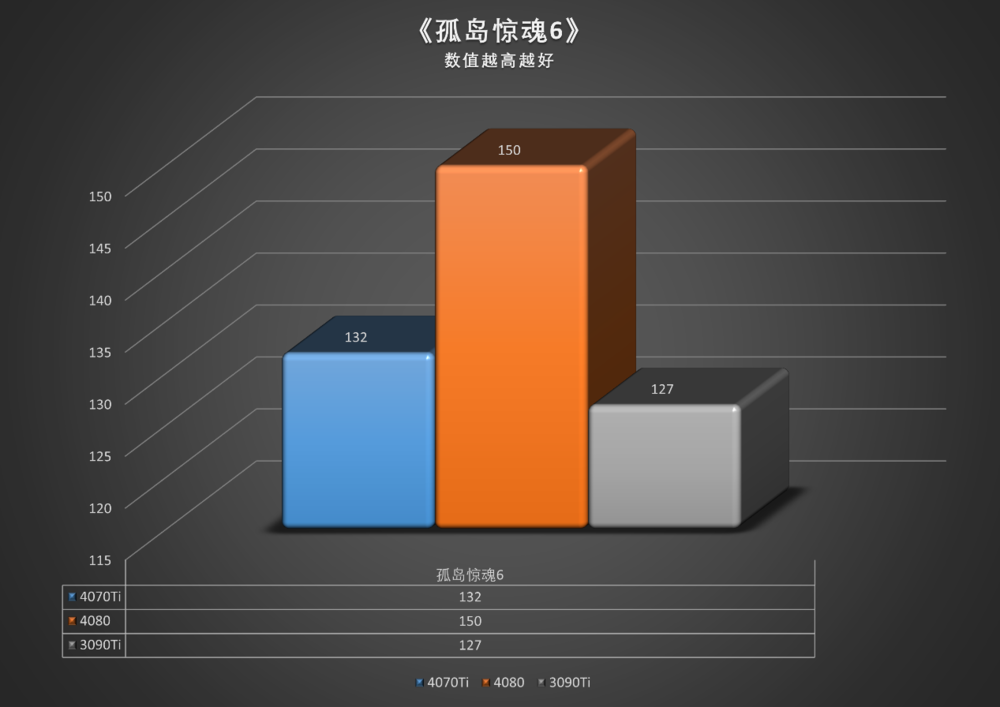 為了更直觀的看到iGame RTX 4070 Ti火神性能,這裡我們也加入了RTX 4080 16GB和上一代卡皇RTX 3090 Ti作為對比,由於RTX 4080 16GB在核心規格更高,所以同等架構下相比於RTX 4070 Ti強上不少,但RTX 4070 Ti則和上一代的RTX 3090 Ti成績又旗鼓相當,前提是2K解析度下。
