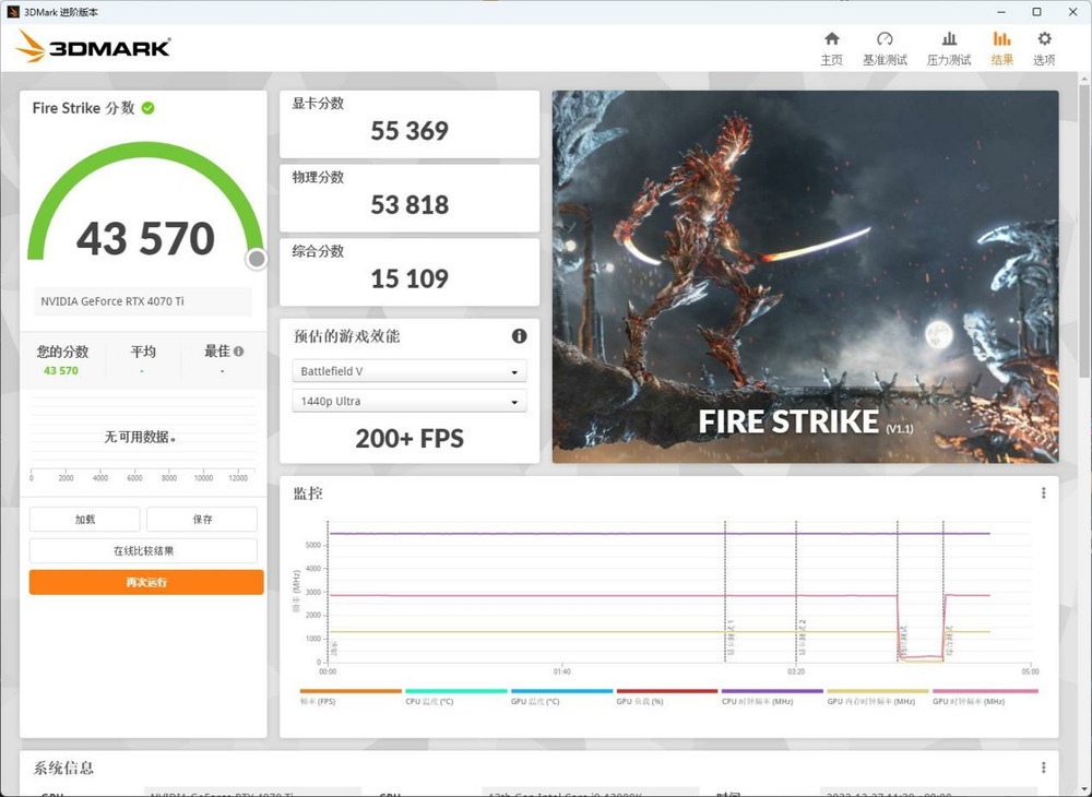 FireStrike在2K@144解析度下,得分為43570,顯卡得分55369