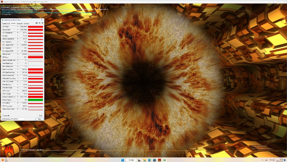 簡單測試下功耗,顯卡狀態為開啟一鍵超頻,使用甜甜圈烤機10分鐘。核心溫度是60度,風扇轉速是1656轉,最大功耗266.8W,此時室溫是20度。得益於七彩虹iGame RTX 4070 Ti Vulcan OC的散熱器非常豪華,所以我們也不意外它的溫度非常低,而且就4070 Ti的294mm²的核心來說這個散熱規格甚至有些過剩。