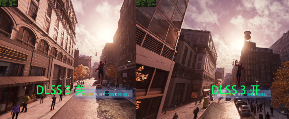 邁爾斯·莫拉萊斯在《漫威蜘蛛俠》之後,成為新一代小蜘蛛。繼續懲惡揚善。《蜘蛛俠:邁爾斯·莫拉萊斯》加入DLSS的大家庭,支持DLSS 3以及光追功能。所以開啟幀生成後,遊戲有著68%的性能提升。