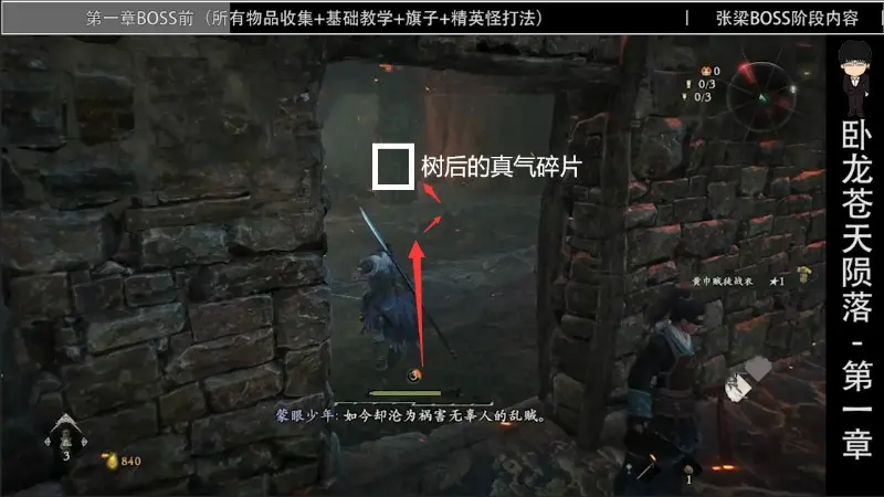 起手進場一路走到底,路上蒙眼少年會給3個龍壺,前面死路地上有真氣破片