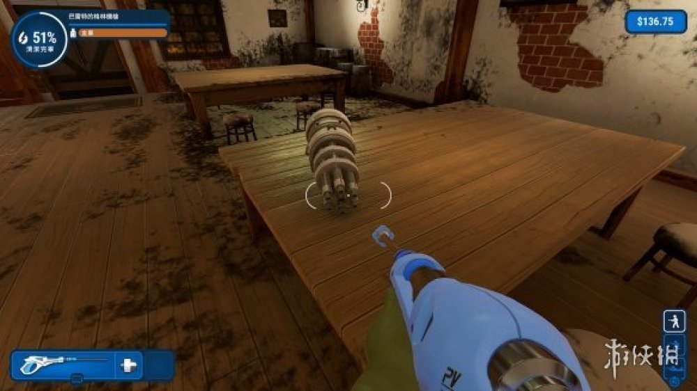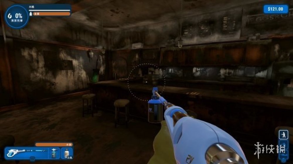 經過一整天工作下來,暫時去趟當地酒吧休息一下吧,然而你立即意識到這家酒吧不但沒人營業,每一處角落更是藏污納垢,更令人驚訝的是傳說中的武器竟然就擺在那長灰塵,身為對世間一切污垢有不共戴天之仇的專業清潔工,這怎能忍受。由於本關卡眼見之處都是污垢,需要手上的清潔機器好好呵護,所以不用想了,拿出強力清洗機,換上各式各樣能去除各式材質上污垢的清潔劑,讓第七天堂重回昔日應有的風貌吧。