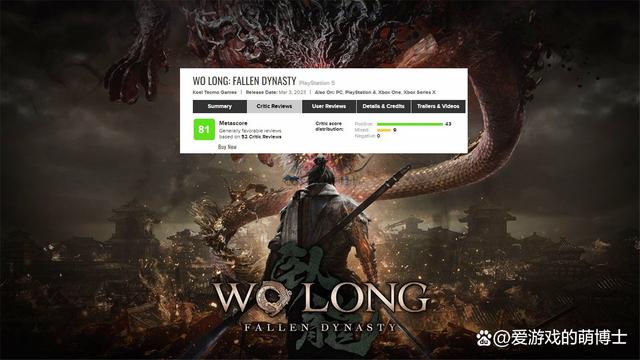 《卧龍:蒼天隕落》正式上市前,游戲媒體的評分就已經公開。博士去評分統計網站metacritic上看了一下,發現游戲的媒體評分還不錯!以PS5版(目前有50多家媒體打了分)為例,《卧龍:蒼天隕落》目前的平均分為81分(滿分100分),其中43家媒體給出了好評,9家媒體給了中評,全部是正面反饋,一個差評都沒有!同時,游戲PC版也是類似的狀況(82分)。