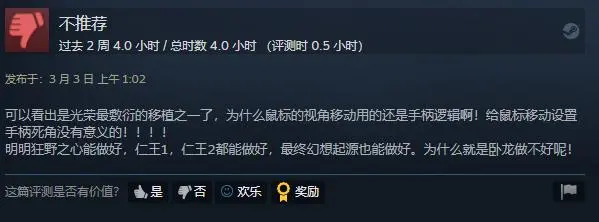 不過,它在 Steam 上發售後,卻收獲了高達 63% 的差評。大部分差評,集中在游戲糟糕的優化與鍵鼠適配上。