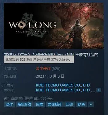 3 月 3 日零點,光榮特庫摩新作《卧龍:蒼天隕落》在 Steam 發售,普通版售價 298 元,豪華版售價 447 元。