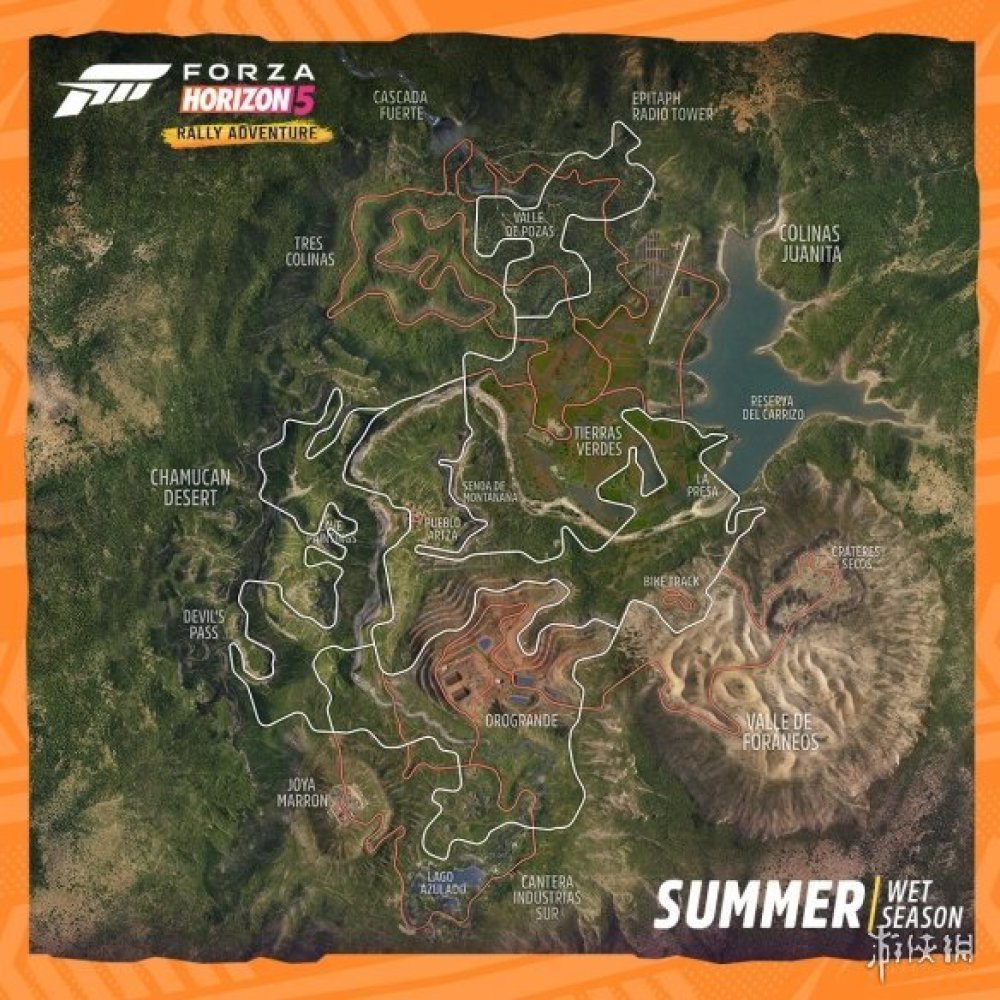 《極限競速:地平線5》全新擴展包「拉力賽冒險」還有不到4周就要發售了,今天官方公布了該擴展包的完整地圖樣貌,以方便玩家們提前熟悉新賽道。