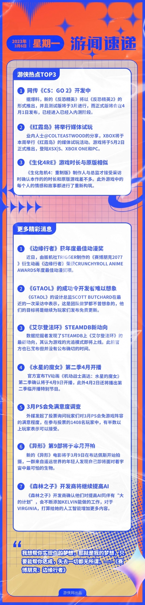 各位朋友早上好,來「遊俠早報」看看昨晚和今晨遊戲界都發生了哪些不容錯過的消息吧~