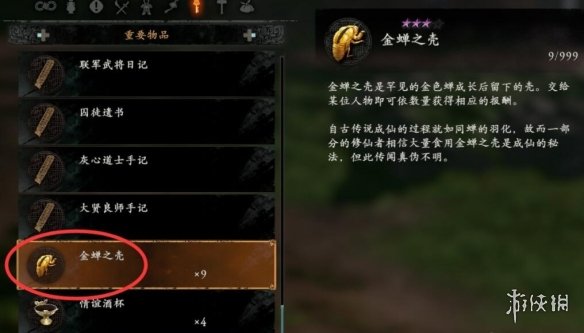 物品欄的重要道具里可以看到金蟬之殼,但是沒有明確說應該給誰。