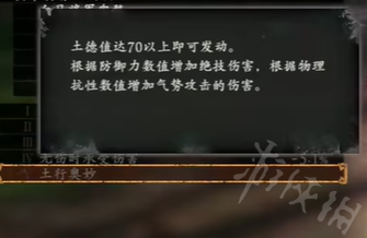 土形奧妙效果為土德70以上發動,根據防禦力提升絕技傷害,根據物理抗性增加氣勢攻擊傷害