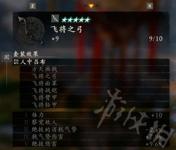 其中白馬所有的固定詞條都是攻擊,黃巾是氣勢獲取,董卓是矛,偏將軍是直刀,所以我選了白馬將軍套。
