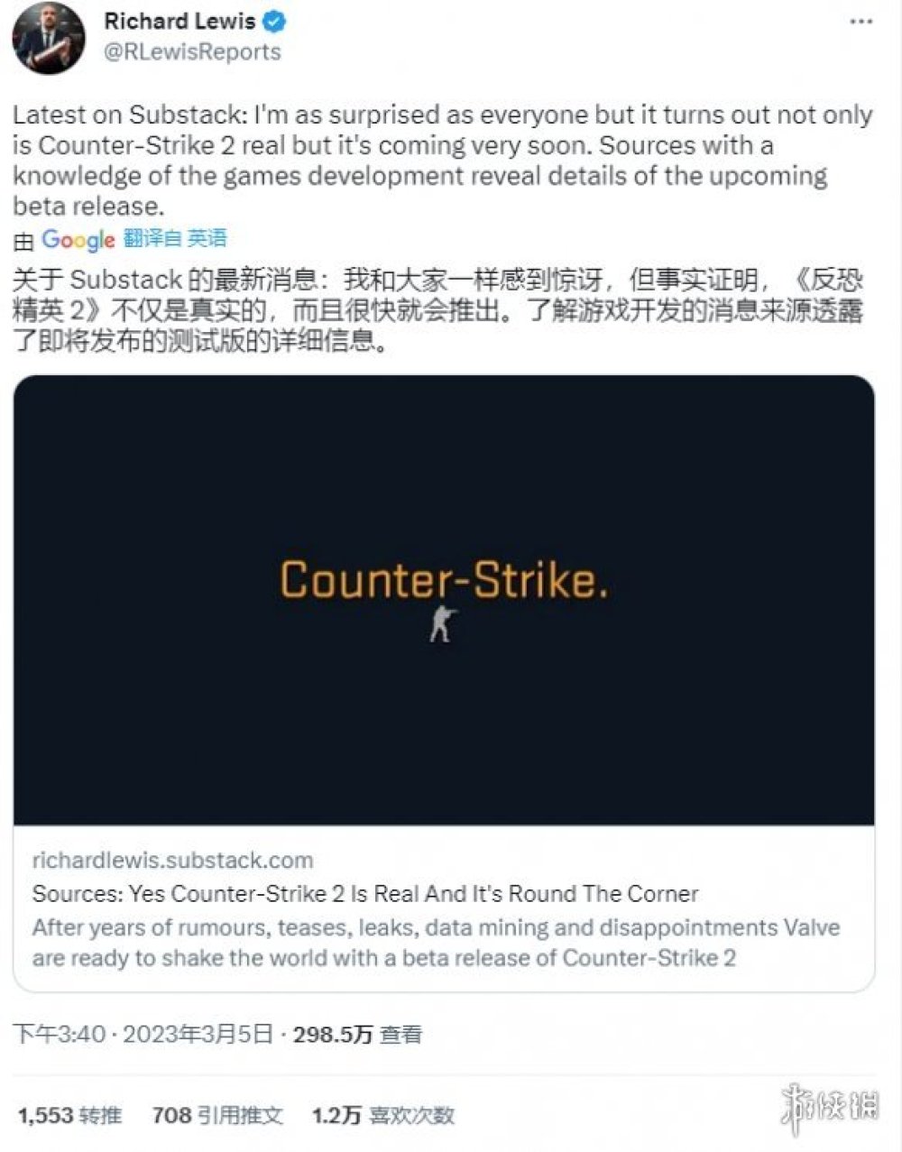 3月5日,一位記者Richard Lewis發文表示:《反恐精英2》不僅是真實的,並且很快就會推出了。