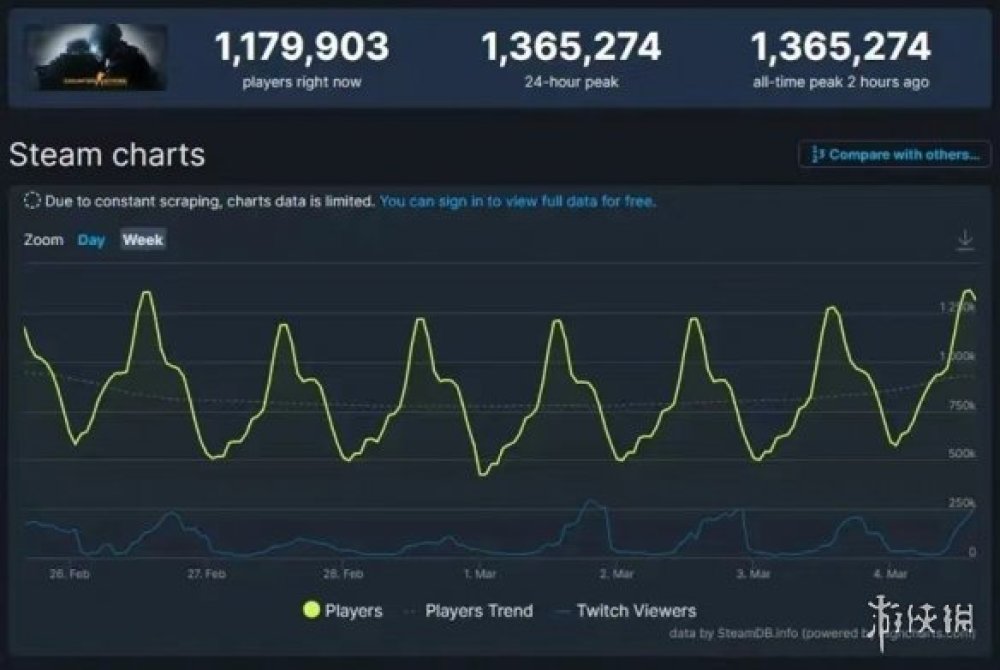甚至在3月4日晚,《CSOGO》的在線人數達到136.5萬,又一次打破了steam同時在線人數的記錄。