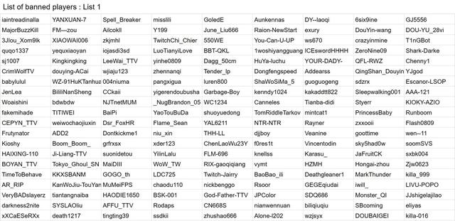 據TechCrunch報道,Battlestate Games最近封殺了6700名作弊者,並將他們所有的暱稱都新增到這份檔案中。