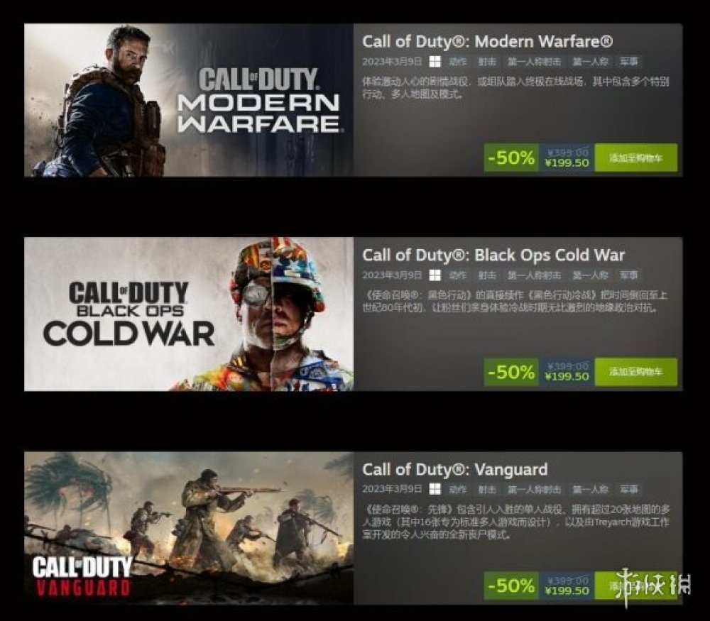今天上架Steam的三款《使命召喚》囊括了系列最熱門的現代戰爭、冷戰與二戰(但是小編不太推薦18的魔幻二戰),感興趣的玩家可以點選此處前往Steam促銷頁面檢視~