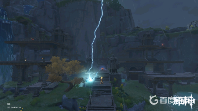 第二個碎片位置:到達圖中的座標點,按照風魔龍廢墟-雪山頂-慶雲頂-璃月主城的順序來調整位置,開啟機關就可以了。