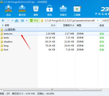7.重點來了!開啟資料夾後有一個Jar檔案,用解壓的方式開啟它,注意,是用解壓的方式。
