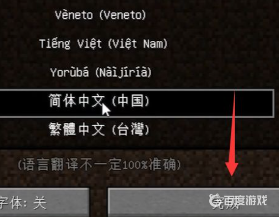 首頁 我的世界 問答 我的世界怎麼設定中文? 2023-03-09 1、進入遊戲主介面,玩家點選Options按鈕進入設定介面。2、進入後,玩家找到Language選項點選進入。3、然後向下拉找到簡體中文點選選中。4、然後玩家需要點選完成按鈕。5、返回遊戲可以看到遊戲已經設定為中文。