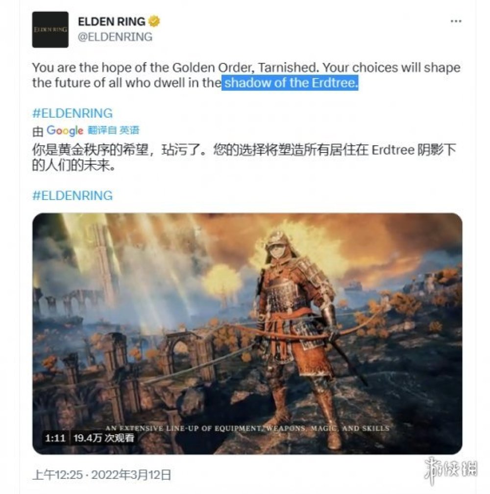 2023年2月28日,FS社正式公佈了《艾爾登法環》DLC“Shadow of the Erdtree(黃金樹之影)”,表示正在開發中。現在有玩家發現《艾爾登法環》官方推特早在1年前就“公佈”DLC名字,且與正式公佈時絲毫不差,如下圖所示。這意味著DLC可能早已在開發中。
