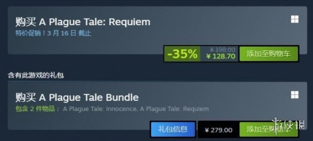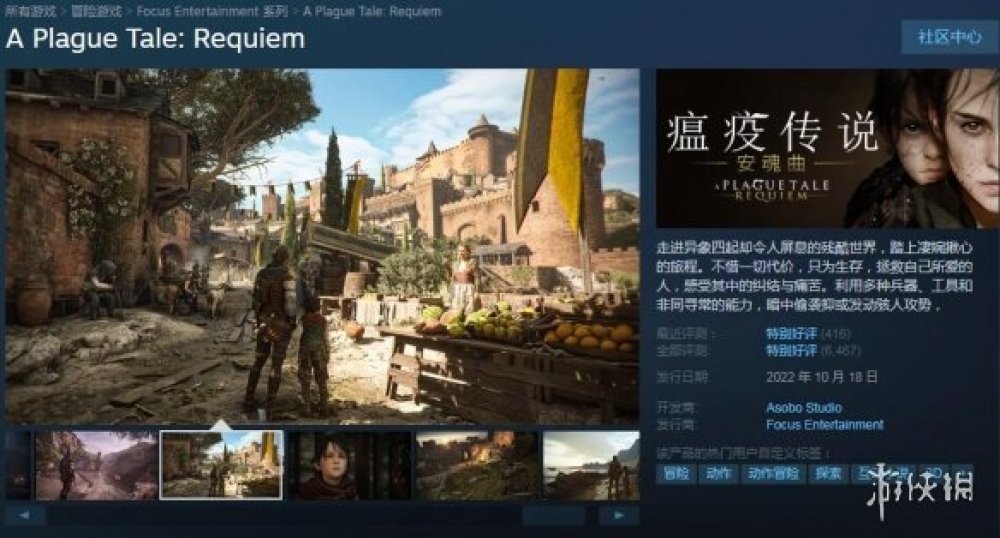 劇情向冒險遊戲《瘟疫傳說:安魂曲》今日於Steam平臺開啟6.5折優惠,新的史低價格為128.7元,喜歡解謎/潛行/鼠鼠的玩家們可以考慮入手。