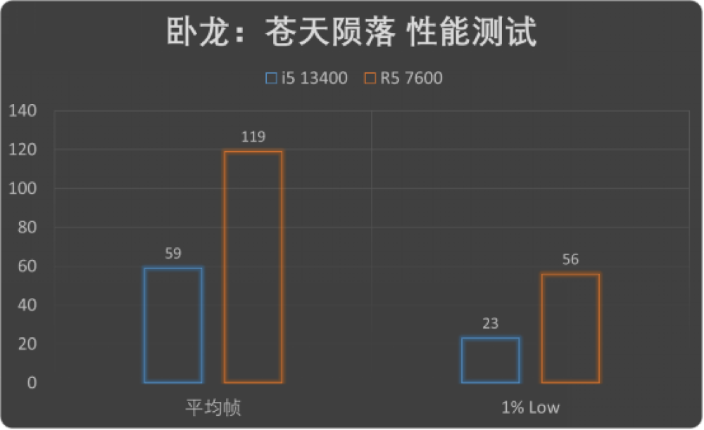 不過,這款遊戲的PC移植的效能表現十分尷尬。在目前的版本下,銳龍5 7600處理器的表現遠超i5 13400,銳龍5 7600的1% Low效能甚至接近了i5 13400的平均幀,希望忍者組能夠儘快釋出更新補丁。