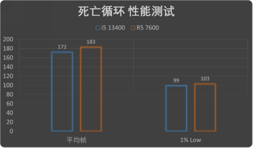 不過,Arkane的天賦樹似乎過於偏重遊戲設計了,他們家的遊戲優化一直都並不優秀。從圖中也可以看到,兩顆處理器的1% Low都在100左右浮動。當然,對於一款並不特別依賴玩家精準操作的遊戲來說,這樣的表現在實際遊戲中是不會帶來多少影響的。而且,儘管優化限制了發揮,我們仍然可以看到銳龍5 7600在這款遊戲中效能表現具有一定的優勢。