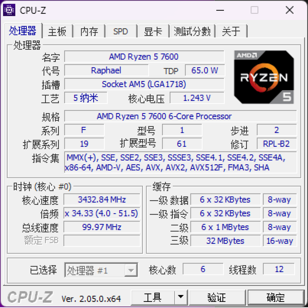 AMD這邊的選手銳龍5 7600仍然採用全效能核心設計,六核心十二執行緒。每個Zen 4核心的基準頻率為3.8GHz,最高加速至5.1GHz。同時,它的L3 Cache面積也顯著變大,容量提升到32MB,這一點將會在實際遊戲中帶來更大的效能提升。