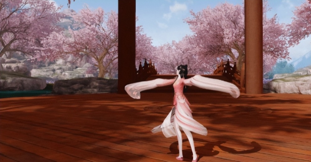 而且,當我們穿上聯動專屬時裝·行春苑還會觸發別樣驚喜,在使用舞蹈動作時常規袖口將變為水袖,如羽翼自動舒展,瞬間化身成為嬛嬛驚豔全場。
