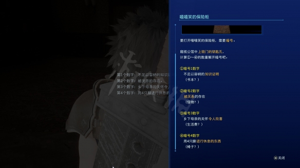 前往神羅公館調查二樓西側的保險箱和窗邊紙條,觸發小遊戲;