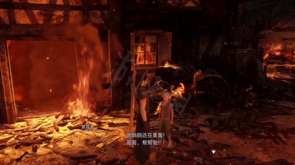 劇情推進到尼福爾海姆著火後,與旅館前男孩對話,救出她的母親即可。