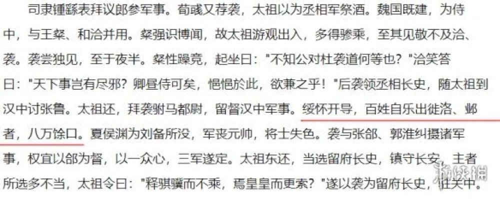 根據《三國志魏書十五》和《三國志魏書二十三》中,關於曹操從漢中撤軍後,劉備迅速於夏季佔領漢中全境及東三郡的記載似乎能側面證明他們的說法,除了曹老闆的丞相杜襲遷移的那八萬人口外,其餘戰時的漢中人口以及東三郡的人口都入了皇叔的口袋。