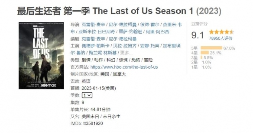 劇版《最後生還者》在上週完美收官,雖然部分劇情進行了修改但總體與原版遊戲劇情相同,劇集最後一集當日收視率達到了820萬人次創下收視紀錄。在國內豆瓣評分也高達9.1,這作為一部遊改劇來說已經是很不錯的成績了。